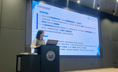 隨后,肖老師鼓勵大家在工作中主動溝通、勤于詢問,遇到不確定的事項應及時向老師核實,以減少理解誤差,提高工作準確性與效率。面對多項任務并行時,她建議大家主動識別優先級,與老師明確任務次序,做到有序推進、高效落實。會議尾聲,她通過展示往屆優秀助管助教參與招生復試、迎新服務、暑期夏令營等工作場景的案例,生動詮釋了該崗位所蘊含的責任與成長價值。她希望全體助管助教在實踐中樹強化責任意識、鍛煉綜合能力,實現“在服務中學習,在協作中成長”。
