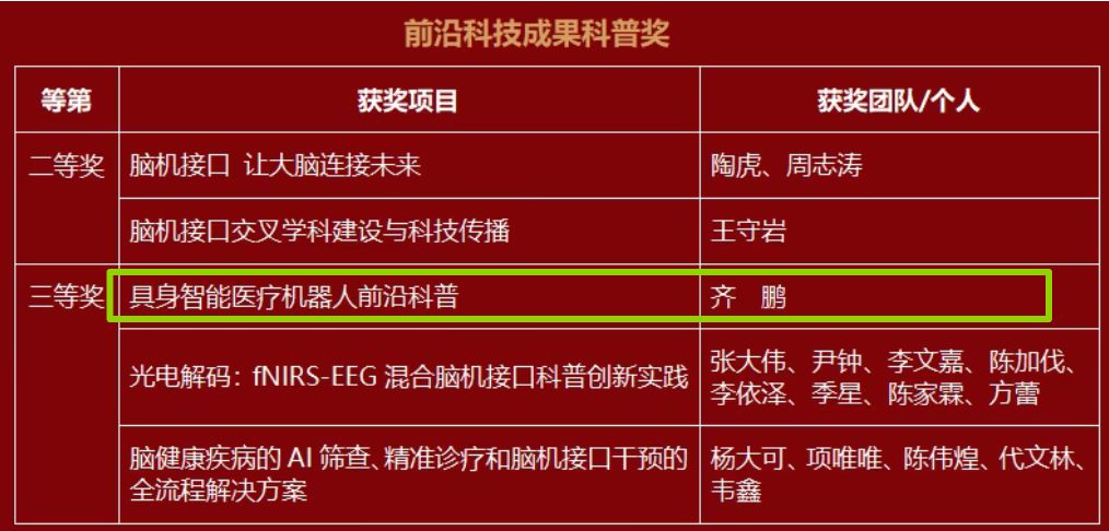 醫療機器人實驗室負責人齊鵬副教授申報的“具身智能醫療機器人前沿科普”項目,成功榮獲首次設立的“前沿科技成果科普獎”個人三等獎,這標志著六合彩結果