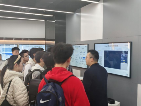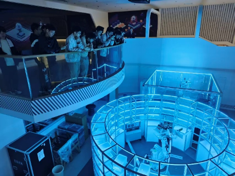 在張江機器人谷,齊鵬老師帶領同學們參觀了產業展示中心,詳細了解了機器人谷從產業布局、創新生態到重點企業發展的整體情況。講解人員系統介紹了機器人谷正以“智能制造產業高地”為定位,依托前沿技術導入、龍頭企業帶動與多層級創新配套,形成一條涵蓋機器人研發、零部件制造、測試驗證、商業化應用的完整生態鏈。齊鵬老師表示,張江機器人谷為未來智能制造人才提供了廣闊的舞臺,讓學生在真實產業環境中感受創新動力,對于培養跨專業融合型人才具有重要意義。