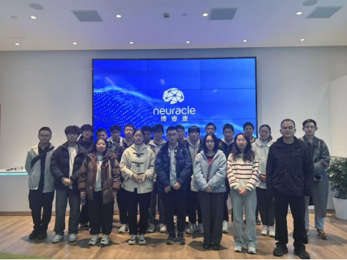隨后,齊鵬老師帶領同學們前往博睿康醫療科技(上海)公司進行參訪。作為醫療科技領域的創新先鋒,博睿康醫療科技專注于腦機接口、神經調控及高端醫療電子設備的研發與生產,尤其在微創醫療設備和智能診斷系統方面取得了顯著突破。在博睿康醫療,企業工程師詳細解讀了公司在醫療科技領域的創新路徑與最新研究成果,重點介紹了公司在腦機接口技術方面的領先地位——通過將大腦信號轉化為計算機可識別的指令,實現人機交互的新方式,為殘障人士提供了更為便捷的溝通與控制手段。