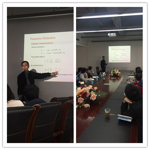 師生們作了題為“Problem of Estimation in nonlinear systems: a contraction approach”的學術報告。 該報告主要討論了系統模型的參數估計和非線性動態系統不可測量的狀態估計問題。