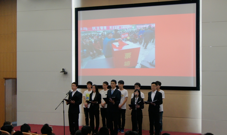 詩會在本科6支部的《五四青春,我的中國夢》中拉開了序幕。隨后,五四頌、祖國頌、核心觀、同濟情四個篇章依次展開。本科8支部的《五四禮贊》使在場每一個人的思緒都回到了那段歷史中,飽含深情的朗誦,句句展現著同學們的愛國之心。本科4支部《民主的輝煌歷程》在朗誦中加入了表演,形式新穎,讓人眼前一亮;而同學們或舒緩低沉,或慷慨激昂的朗誦博得了現場觀眾的陣陣掌聲。本科9支部的《祖國頌》和本科3支部的《夢舞神州》熱情謳歌了在中國共產黨人的領導下日益繁榮昌盛的祖國,抒發了愛黨、愛國的情懷,表達了大學生黨員永跟黨走、共筑中國夢的決心和信心。本科1支部《奉獻之歌》、本科5支部《愛崗敬業》和本科2支部《以誠信的名義宣誓》幾首詩歌的朗誦,語調激昂,富有感召力,很好地從社會主義核心價值觀的不同側面,表達了同學們對核心價值體系的理解與思考,對如何踐行社會主義核心價值觀有很好的指導意義。本科10支部《六合彩結果