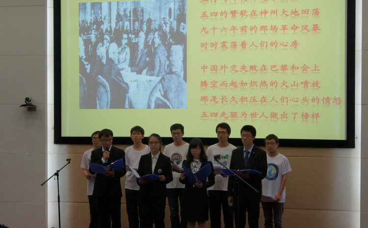 黨委副書記董變林和學生黨總支的師生黨員近200人出席了詩會,共同紀念五四運動96周年,弘揚社會主義核心價值觀。