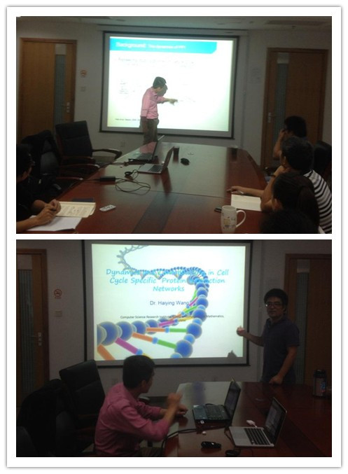 報告會上,Haiying Wang教授首先系統地介紹了了蛋白質相互作用網絡動態組織規律的研究背景,接著介紹了以酵母細胞周期實驗數據驅動的動態過程研究,以及在細胞周期生物過程中兩類hub基因(data hub和party hub)起到的作用和各自特點,最后介紹了基于minimum dominating set方法所識別出的關鍵蛋白(critical protein)和多余蛋白(redundant protein)在蛋白質相互作用網絡中的拓撲結構特點、基因組中的必要性、功能相似性和在網絡中的恢復力。報告過程中,六合彩結果