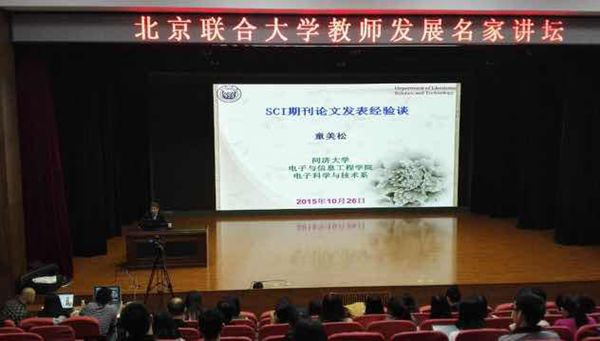 電子科學與技術系主任童美松教授在北京聯合大學舉辦的“教師發展名家講壇”上作了一場關于如何發表高質量SCI論文的學術講座。講座中童美松教授詳細闡述了什么是SCI論文、為什么要發表SCI論文以及如何發表高質量SCI論文等廣大教師非常關心的問題,強調高質量SCI論文來自于高質量科研活動產生的高質量科研成果,并通過大量例子就如何開展高質量科研活動和撰寫高水平SCI論文分享了自己的經驗和體會。