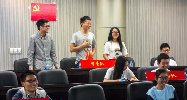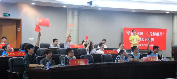 各支部響應“兩學一做”熱潮的行動和工作。緊接著,在各參賽隊的風采展示之后,主持人介紹了本次黨章知識競賽的流程和規則。比賽共分為必答題和搶答題兩個環節,題型涵蓋黨史、黨章、可持續發展、兩學一做、十八大、軍隊、外交等范圍,涉及愛國歌曲、革命電影、文字材料等類型。隨后,精彩的比拼正式拉開了帷幕。各代表隊在第一輪的必答題環節均體現了不俗的實力和水平,給現場觀眾們留下了深刻的印象。同時,在更為刺激的第二輪搶答題中,爭奪更為白熱化,選手們敏捷的反應和冷靜的思考,都贏得了在場同學們的陣陣掌聲。最終,經過激烈的角逐,來自電氣信通聯合黨總支的“無畏隊”、“123代表隊”及來自計算機聯合黨總支的“紅又專代表隊”分別榮獲冠亞季軍。