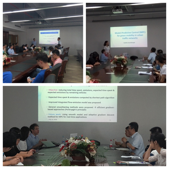 隨行Ana Jamshidnejad博士作了題為“Multi-objective model-predictive control with endpoint penalties for reduction of congestion and emissions”的學術報告,介紹了一種模型預測控制器,以集成溢流排放模型為核心,以尋找減少擁塞和排放量之間的平衡。