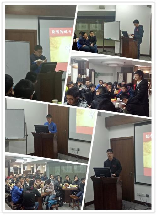 本次讀書分享會采用朗讀+分享的方式進行,同學們圍繞“我認識的中國”選取經典著作,大聲朗讀,分享感受。分享會由趙云同學主持,王元龍、黃浩、常焱顥、張少凡、肖云鵬分別挑選出自己感觸最深的著作的段落進行朗讀,然后與聽眾分享讀書心得體會,有對中國農民問題的思考,關注農民,關注社會問題,深刻地體悟到中國農民固有的弱點,更看到了農民的善良、勤勞、孝順、敢于擔當的優良品質,更可貴的是能以一顆悲憫之心,指明了解決問題的方向;有對人生的認識,認識到生活需要奮斗、進取與挑戰,不能等待別人來安排,要自己去爭取,認識到人生應有信仰和追求,面對不公平的命運,只要不屈不撓、艱苦奮斗、勇往直前,終能獲得成功;也有對中國政治制度的關注,了解到中國政治的發展進步,洞察到就現如今中國的政治條件來說,人民代表大會制度符合中國國情,人民代表大會制度使得我國政治更加民主、透明,甚至比外國的人人參與選舉的民主制度顯得更加合理高效。......整個讀書分享會穿插讀者與聽眾互動的環節,同學們都踴躍舉手發言,各抒己見,與讀者交換了自己獨特的見解,活動過程進行得非常順利。