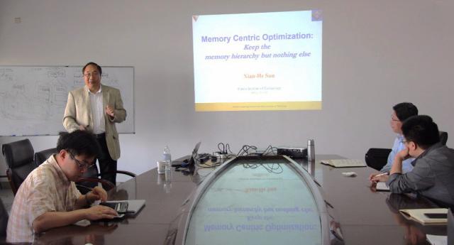 ,并在527會議室作了題為“Memory Centric Optimization: Keep the memory hierarchy but nothing else”的學術報告。