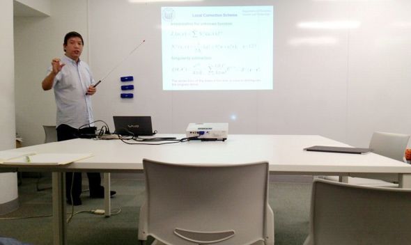 高級數學科學系(Department of Advanced Mathematical Sciences)系主任Naoshi Nishimura(西村直志)教授團隊建立了合作關系,希望在求解大型復雜電磁問題的新穎數學方法方面開展合作研究。訪問結束前夕,童美松教授應邀在全系范圍內作了題為“求解復雜電磁問題的非傳統數值方法(Nontraditional Numerical Methods for Solving Complicated Electromagnetic Problems)”的公開學術報告,受到了教授和學生的歡迎和好評,并在事后進行了熱烈的互動與討論。