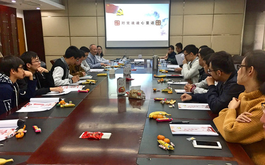 會議第三部分,全體黨員敞開心扉,對黨說說“心里話”。金老師首先發言,結合學習十九大報告的要點,他提出“學”與“思”兩方面都要重視的觀點,黨員在學習的過程中需要認真思考,正確解讀十九大報告精神。隨后,他結合《榜樣》節目談了自己的看法:一方面,不忘初心,為中國人民謀幸福,為中華民族謀復興的初心不能變。另一方面,激勵大家結合十九大提到的“堅持初心”,在科研學術方面以及做其他事情上,都應高質量完成,為中華民族的復興做出自己的貢獻。金老師誠摯的講話和建議獲得了大家的認同,引起共鳴。隨后,廣大黨員結合自身在學習、工作以及生活中的感受,進行了熱烈的討論,紛紛發表了自己的感想以及對十九大會議精神的學習體會。