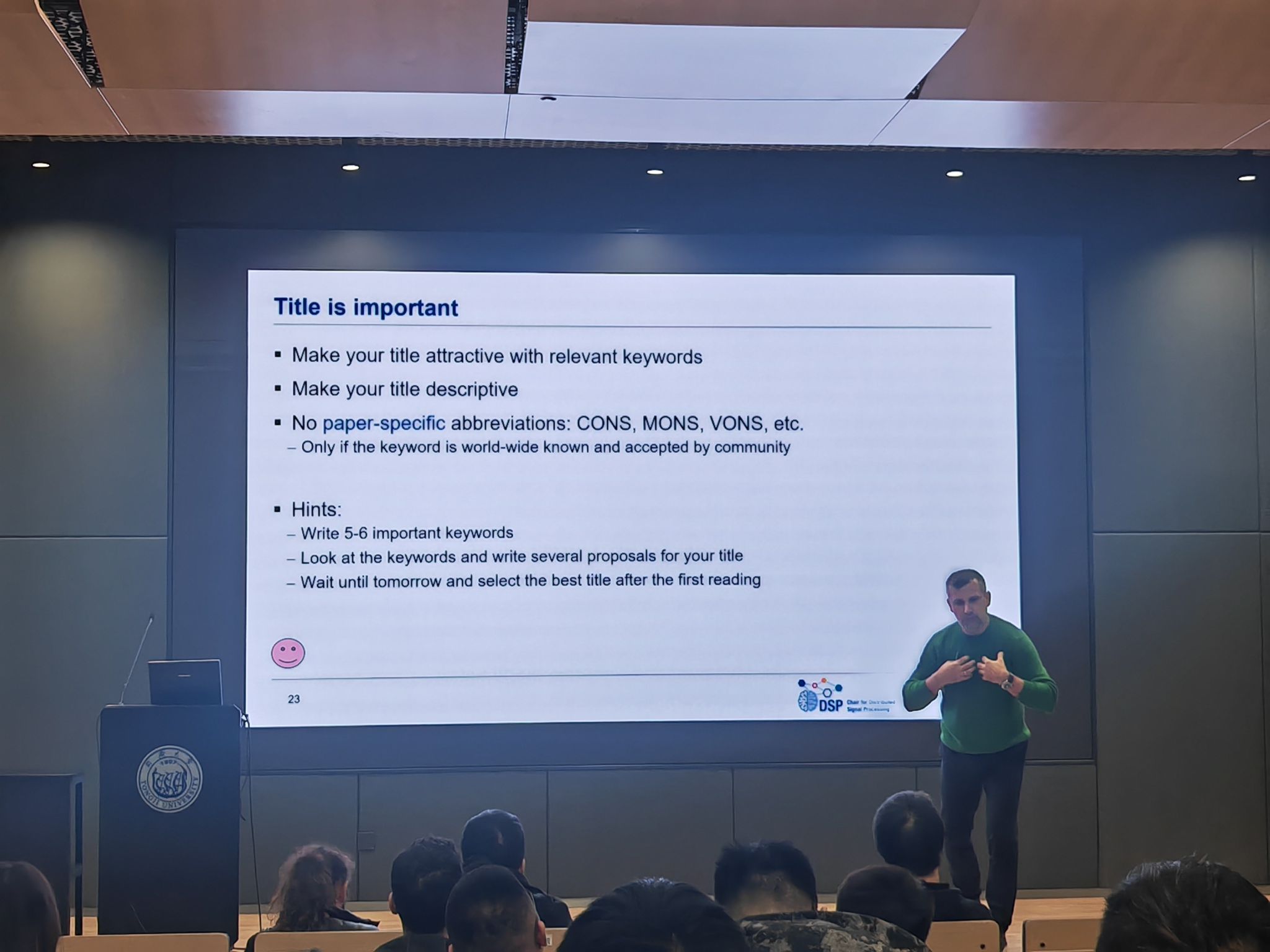 首先,Haris Gacanin教授點明本次報告的核心受眾為青年科研工作者與在讀研究生,強調報告將以實操性指南為核心,結合科研實踐案例拆解學術論文寫作的全流程。他開篇便指出,學術論文的核心目標是清晰且有說服力地傳遞全新科研知識,而實現這一目標的前提,是在動筆前充分厘清目標期刊定位、目標受眾需求以及學術領域的普遍寫作規范,只有錨定了寫作方向,才能避免論文與期刊調性不符、核心價值無法凸顯的問題。同時,他補充道,規整的論文結構本質上是嚴謹科研流程的外在體現,因此從研究初期就需做好問題界定與成果貢獻的明確梳理。接著,Haris Gacanin教授將重點聚焦于論文各模塊的寫作技巧。針對摘要撰寫,他提出要做到“信息完整且凝練”,需同時涵蓋研究背景、核心方法、關鍵成果與應用價值;在引言部分,他強調要搭建清晰的邏輯鏈條,從領域痛點切入,逐步過渡到自身研究的必要性與創新性;對于技術內容的呈現,他建議兼顧專業性與可讀性,通過分層闡述降低理解門檻,同時善用圖表、實例輔助論證,讓抽象的技術原理更易被感知。此外,他還梳理了論文寫作中的常見誤區,如表述模糊、邏輯冗余、研究意義闡述不足、缺乏科學論證等,并用反面案例直觀展示了這些問題對論文質量的影響,讓在場師生清晰認識到語言與結構優化對提升論文影響力的重要性。